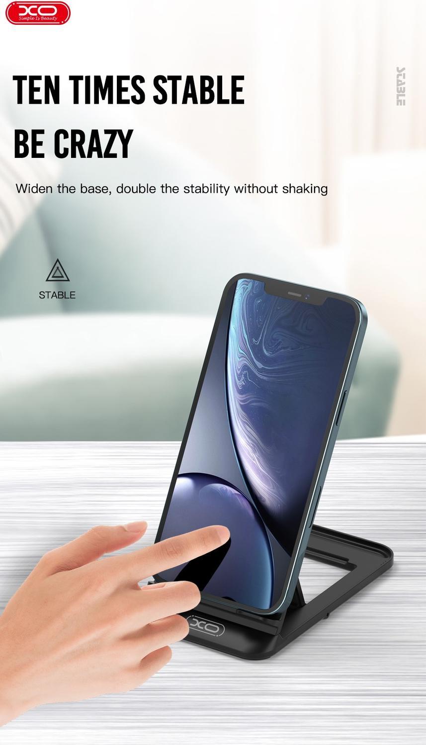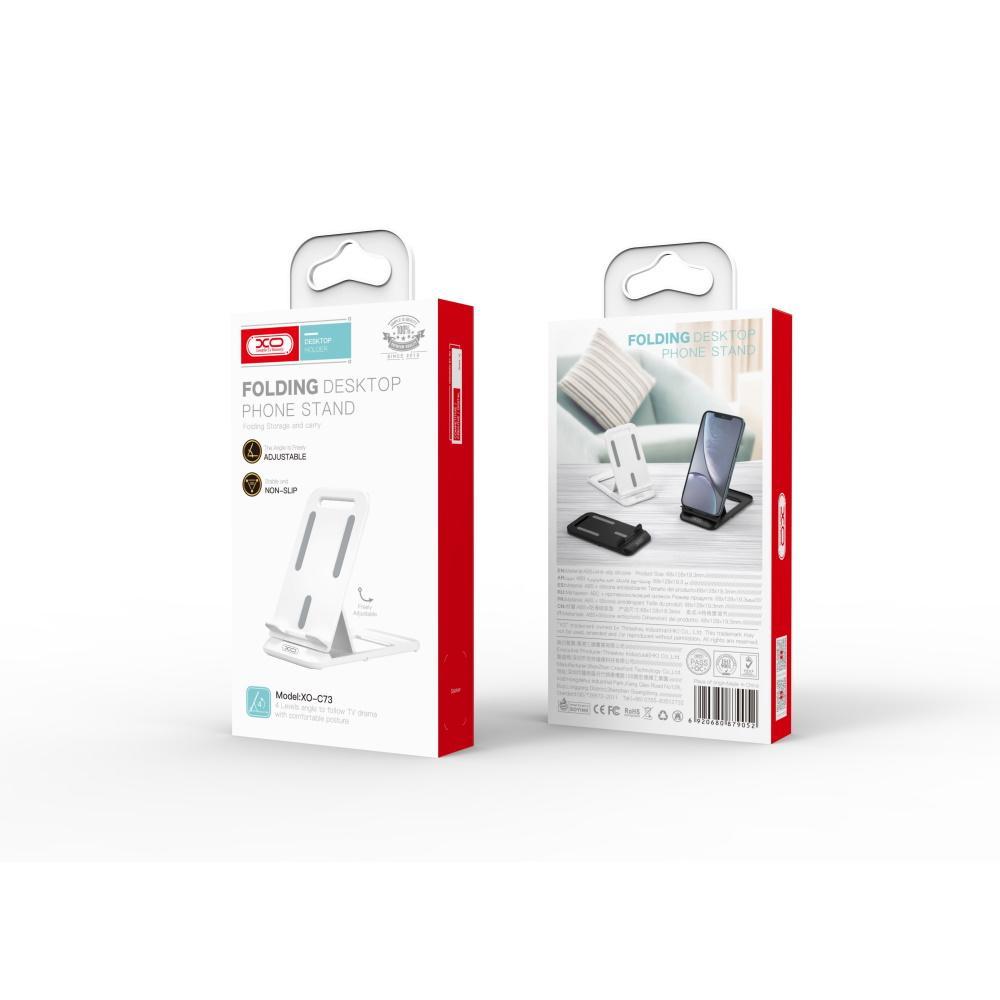 XO C73 är ett universalställ för smartphones/surfplattor med halkfri bas och justerbar lutningsvinkel. Tillverkad av slitstark plast och färdig med de största detaljerna, kommer den perfekt att smälta in i utrymmet där den kommer att resas.